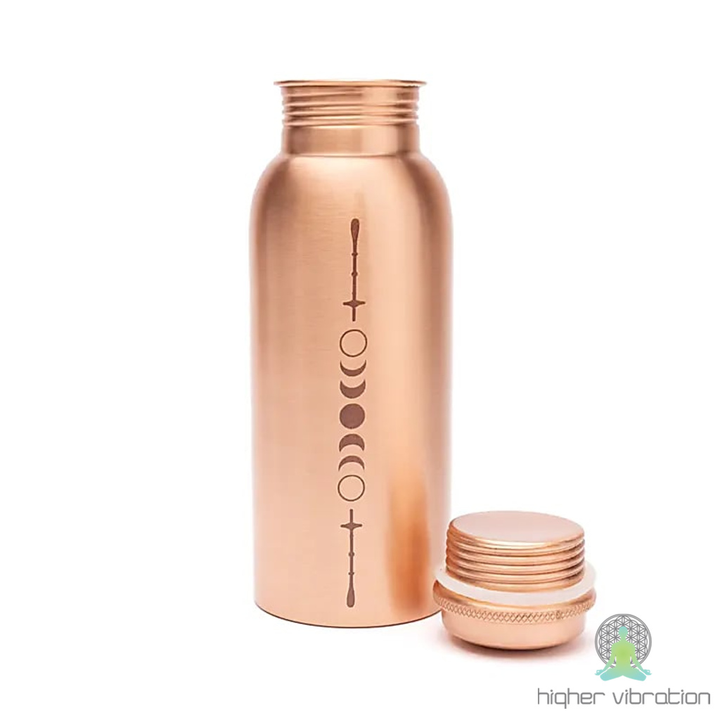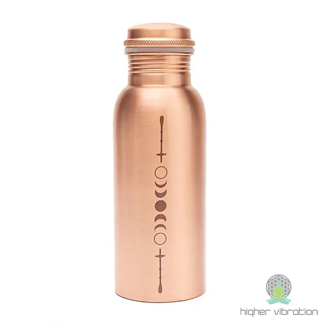 Steklenica (500 ml) iz BAKRA – z lasersko graviranimi luninimi menami in priloženo vrečko iz ekološkega bombaža.