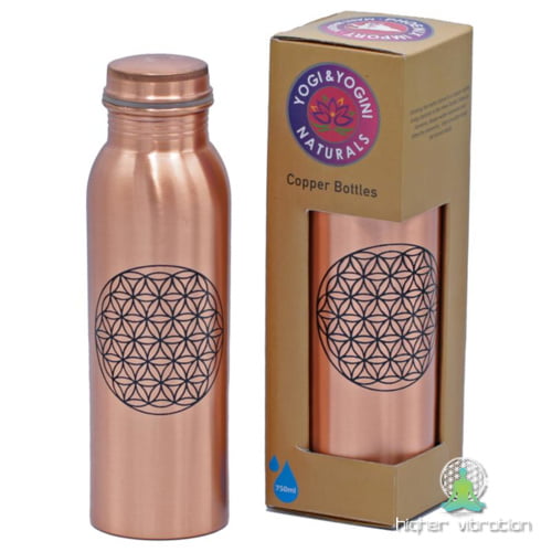 Steklenica (750 ml) iz BAKRA – s temnim dizajnom ROŽA ŽIVLJENJA in priloženo vrečko iz ekološkega bombaža.