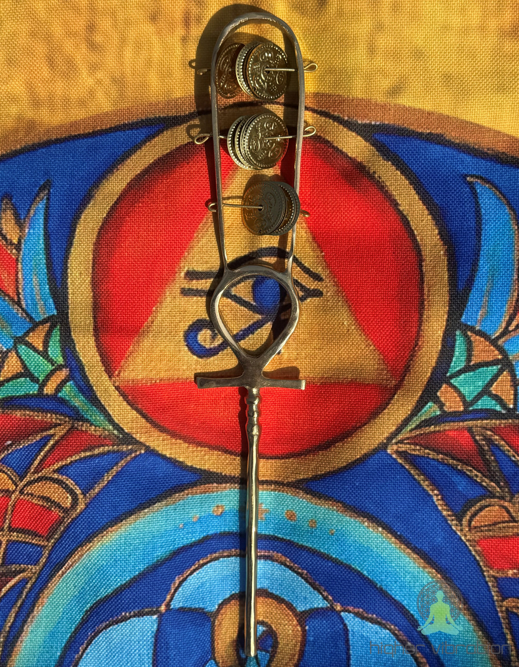 Sistrum s staroegipčanskim simbolom Ankh. Ta “ključ življenja” predstavlja večnost, energijski pretok in povezavo med telesom in dušo.