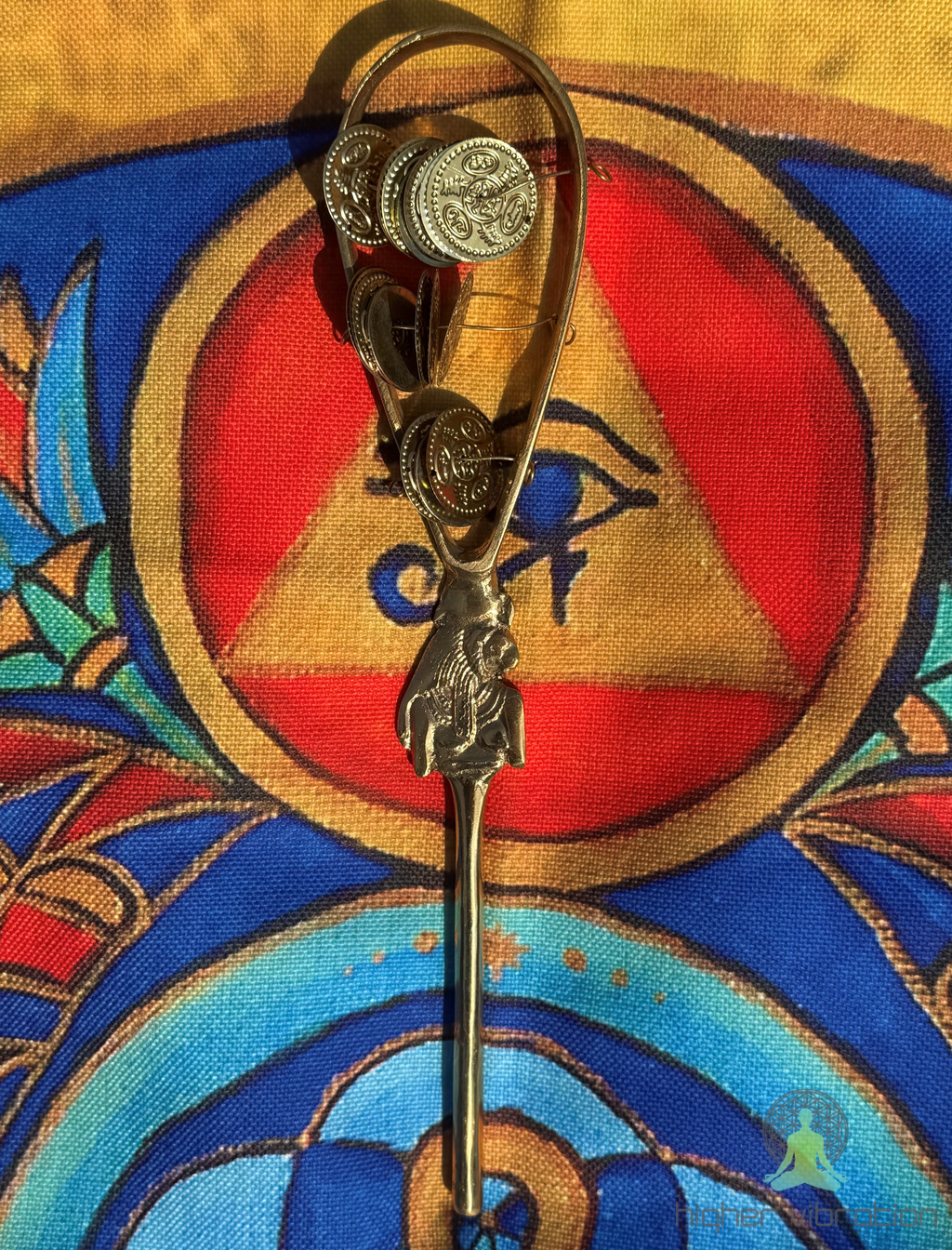 Večji sistrum – Sekhmet – močno staroegipčansko orodje za aktivacijske obrede, ceremonije in glasbo – ročno izdelano v Egiptu.
