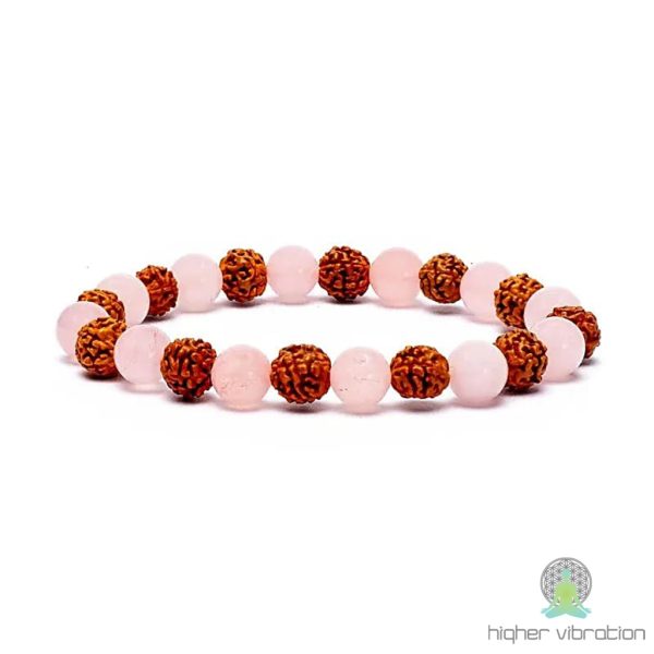 Elastična zapestnica s 7 mm kroglicami rudrakše in roževca združuje zaščito, notranji mir in ljubečo energijo.