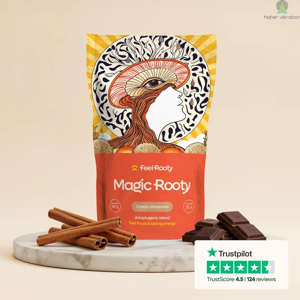 MagicRooty je napitek v prahu z adaptogenimi zelišči in medicinskimi gobami za povečanje energije, koncentracije in za odlično počutje. Napitek vsebuje 50 mg kofeina iz Yerba mate čaja. V napitku Čoko Cimet so dodani datlji in cimet za še boljši okus!
