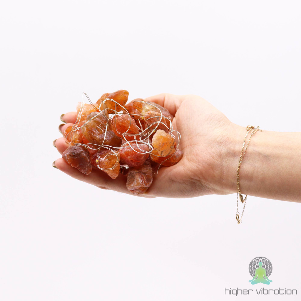 Osvetljeni kristali Oranžnega Žada prostoru prinašajo toplino, ustvarjalnost in vitalno energijo, ki spodbuja radost, optimizem in notranjo moč.