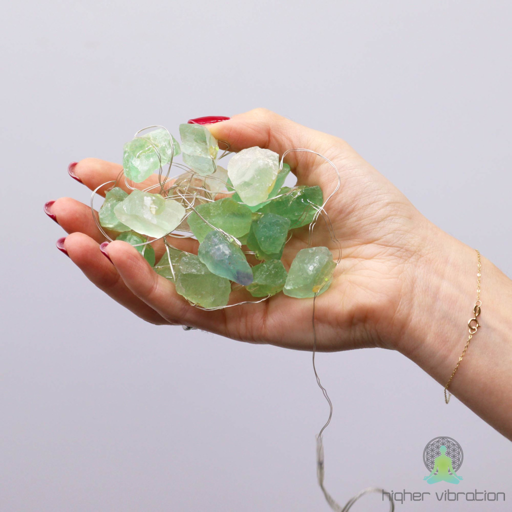 Kristali so povezani z drobno LED svetlobno verigo, ki ob vključitvi oddaja mehak zelenkast sijaj in poudari naravno gladkost ter nežnost žada. Celotna veriga ustvarja pomirjujoče, srčno in harmonično vzdušje, popolno za spalnico, dnevni prostor, meditacijski kotiček ali katerikoli del doma, kjer želite več občutka varnosti in notranjega ravnovesja. Lučke imajo USB priklop, zato jih lahko uporabljate kjerkoli (adapter ni priložen).