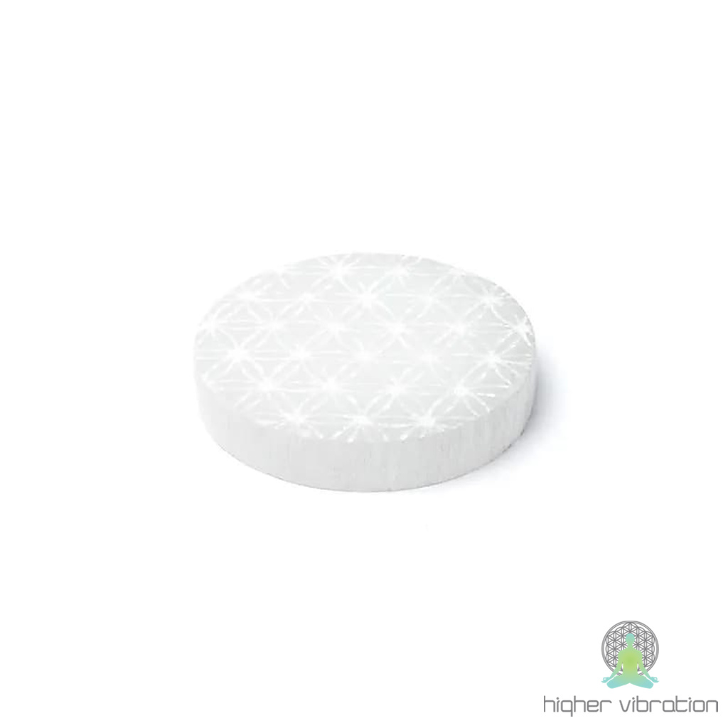 Selenitni podstavek s simbolom Rože življenja je popoln za čiščenje in ponovno polnjenje kristalov. Okrogla oblika in subtilna gravura poudarjata energijske lastnosti plošče. Selenit je cenjen zaradi svojih očiščevalnih lastnosti.