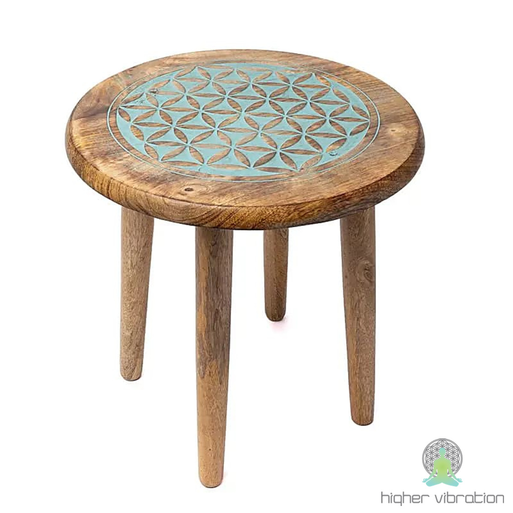 Stranska mizica, Roža življenja (modra, mangov les) – 30x30x31 cm