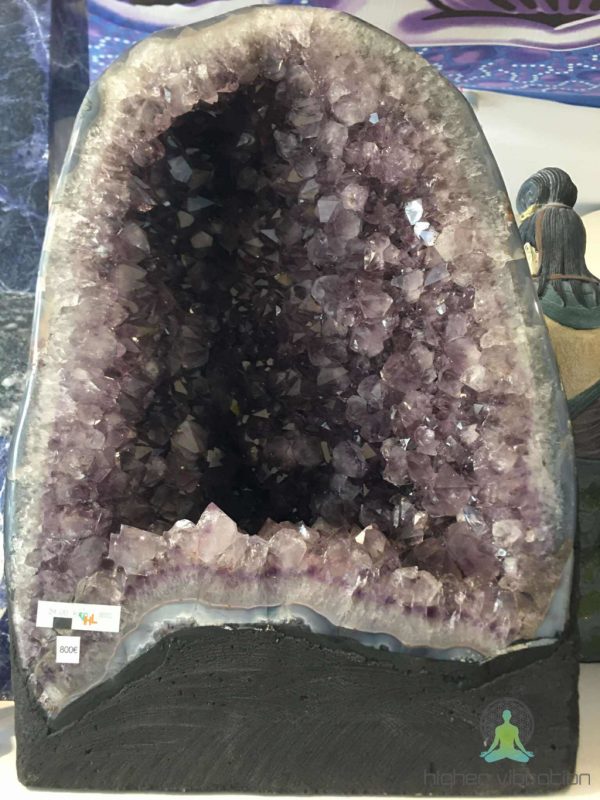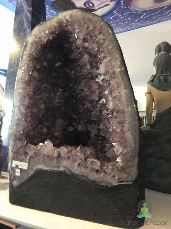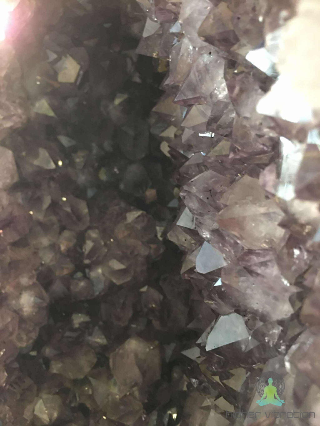 Velik kristal ametista (38×28 cm) je mogočen duhovni zaveznik, ki ščiti pred negativnostjo, umirja misli, krepi intuicijo in ustvarja visoko vibracijsko energijo v prostoru.