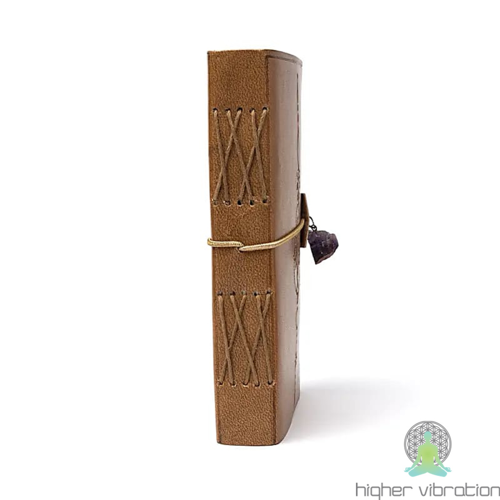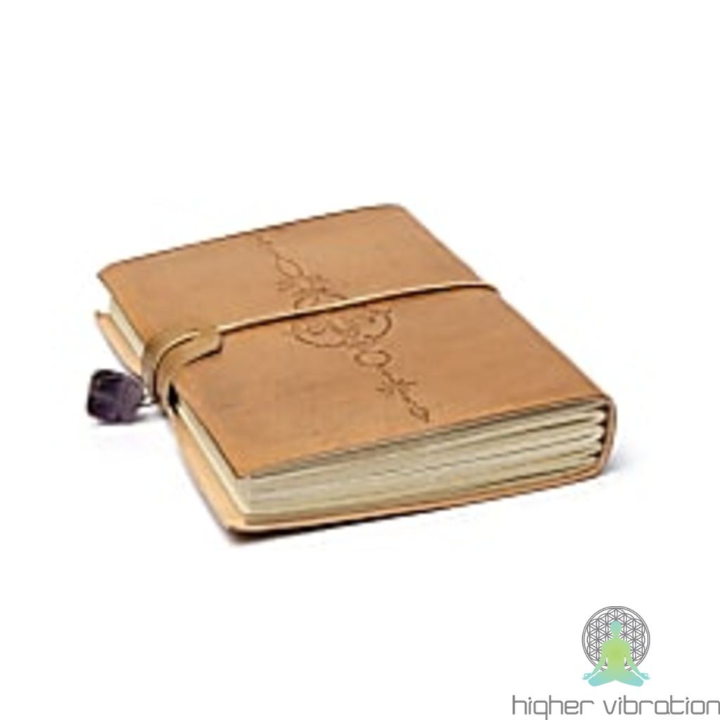 Zvezek LOTUS Z AMETISTOM z usnjenimi platnicami